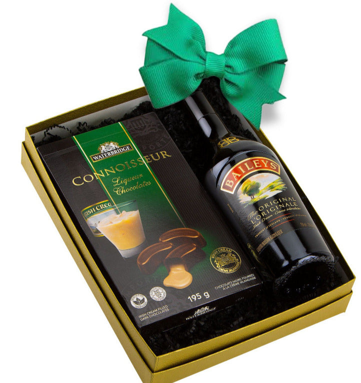 Savour the sophisticated charm of the Bailey's Gift Box, which features the well-known Baileys Irish Cream — a smooth fusion of creamy, sugary flavours tempered with the subtle aromas of chocolate and vanilla, and concluding in the unique fruitiness of Irish whiskey. Sourced from five family-owned farms in County Cork, Ireland, the cream used in this liqueur ensures an authentic and premium taste. Seasonal treats like strawberries, cream, and pumpkin spice will lift your experience and are proof of Baileys' persistent appeal. Complementing this experience is the Irish Cream Chocolate Truffles, a celebration of Irish excellence.